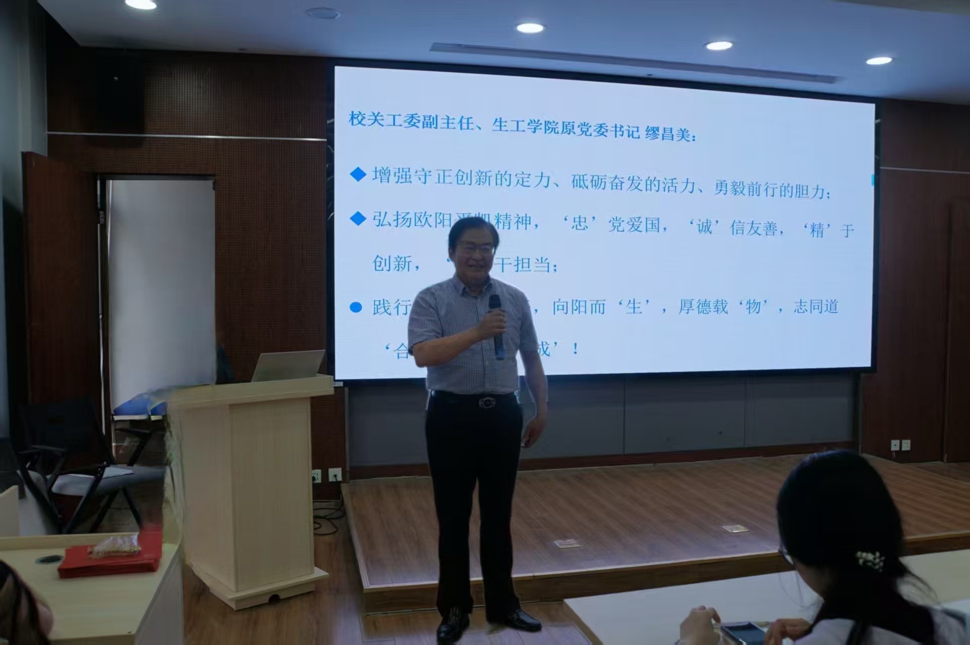 随后缪昌美书记向毕业生党员送上美好的祝福,希望同学们用全新世界观厚植家国情怀,用积极人生观涵养进取品格,用智慧价值观诠释奉献担当,不断提升守正创新的定力、砥砺奋发的活力和勇毅前行的胆力。继续弘扬欧阳平凯精神,做到“忠”党爱国、“诚”信友善、“精”于创新、“实”干担当;继续践行生工学科责任,实现向阳而“生”、厚德载“物”、志同道“合”、行稳有“成”。
