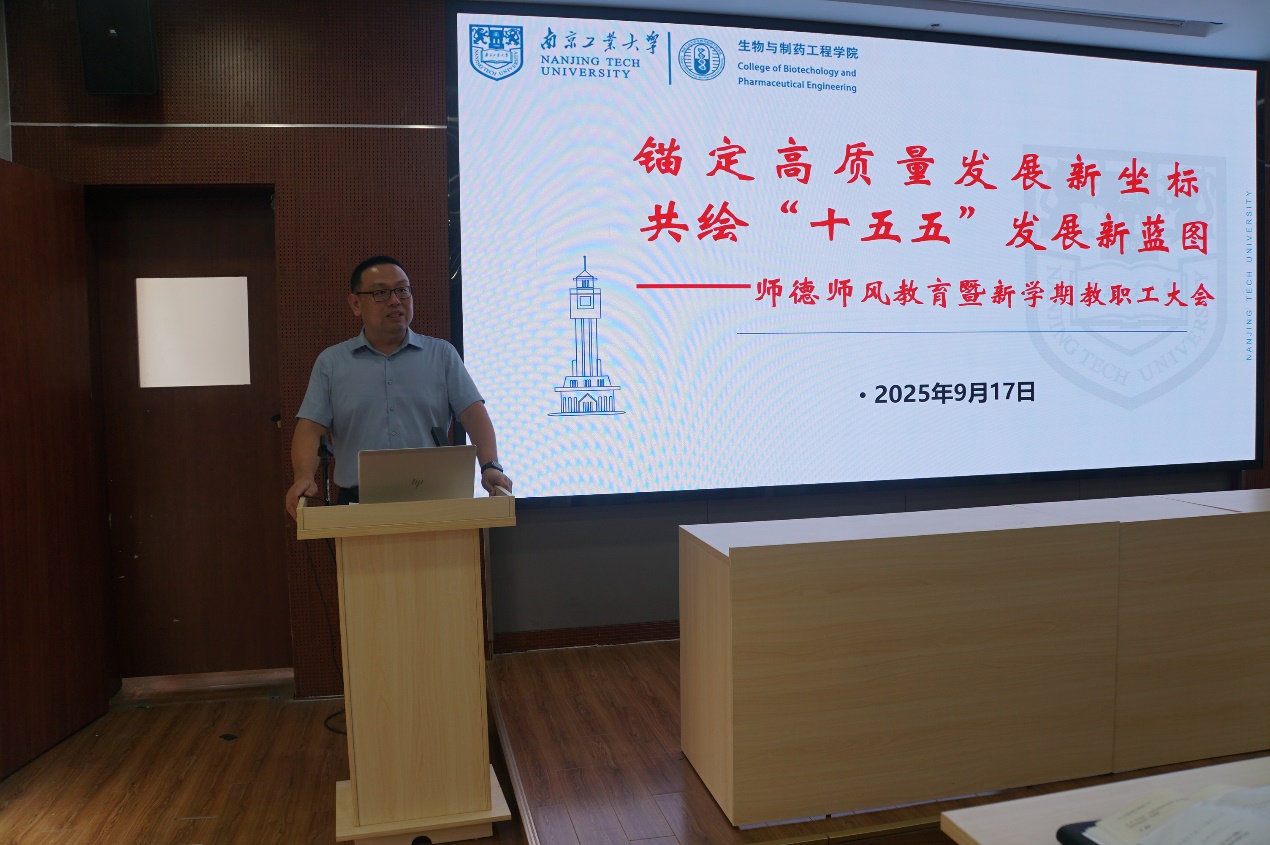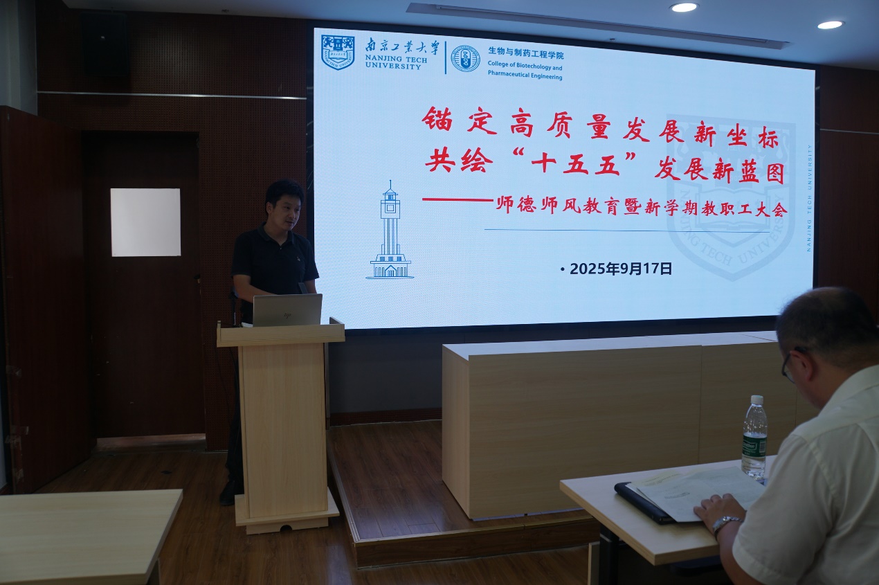 会上,徐元龙副书记结合分管学生工作,就学风建设号召全院教职工进一步发挥三全育人合力,重点抓好第一课堂和科技创新训练中的学风建设,为毕业生稳就业夯实基础。结合2025级新生学业导师计划,号召全院教职工积极参与进新生的专业导学和职业规划中,为提升人才培养质量践行为党育人为国育才使命。并以“学纪、知纪、明纪、守纪,筑牢拒腐防变思想防线”为主题,结合相关案例对师德师风建设进一步明确要求。贾红华副院长就本科教学工作方面有关制药工程专业工程教育认证、课程建设、教师能力培养和教学纪律等进行了介绍,强调教学质量是学院发展的生命线,希望全院任课教师进一步增强岗位责任感和使命感,不断提升专业课程教学质量,提升学生专业素养。方正副院长就研究生培养、学科评估以及国际化工作进行了相关部署,明确了导师作为研究生培养第一责任人,进一步提升学生学业质量与就业质量,为学科高质量建设贡献力量。