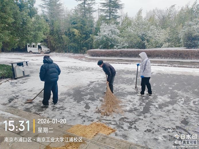 2026年1月20日下午,为应对持续低温雪天带来的出行隐患,保障师生安全,学院教师第一党支部与研究生第九党支部积极响应,联合开展了“破冰除雪保畅通”主题党日活动,对学院低碳中心及周边主干道积雪进行集中清理。
