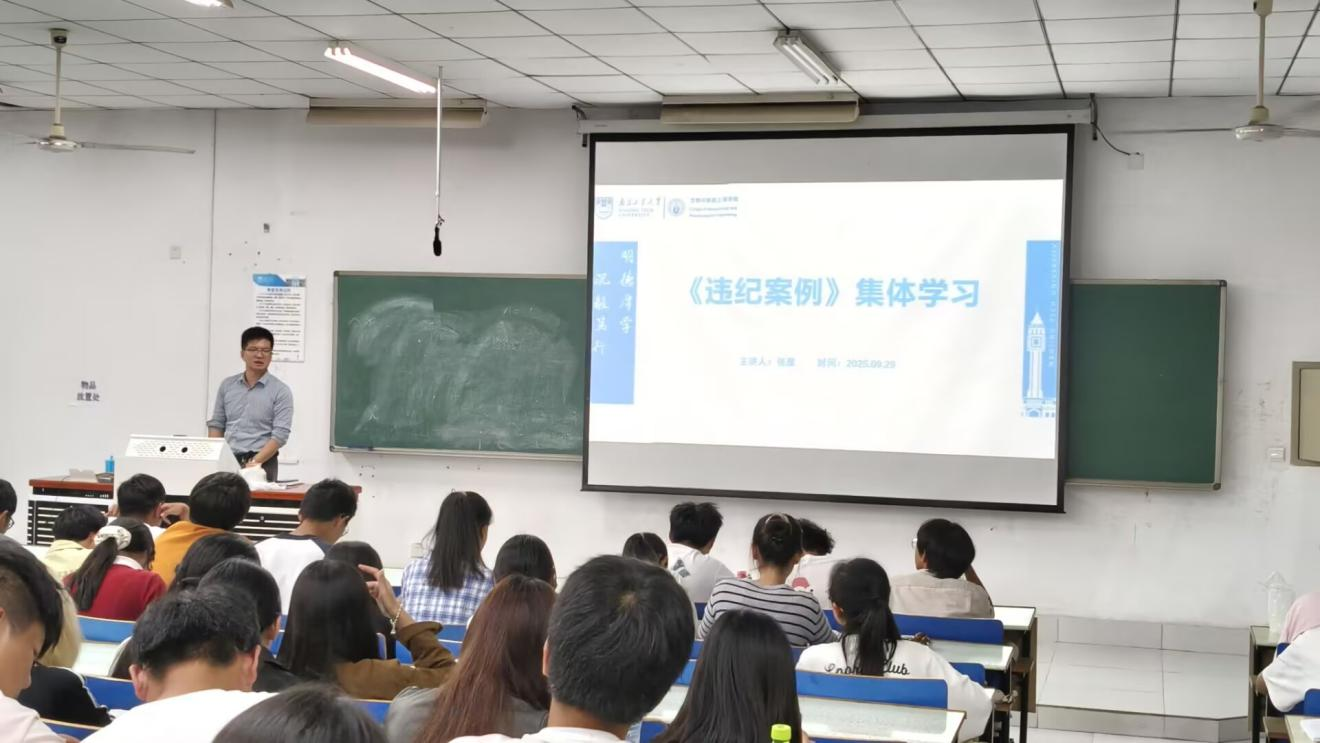 为帮助新生深入了解学校各项规章制度,增强纪律意识与学习内驱力,9月29日下午两点,南京工业大学生物与制药工程学院在仁智楼举办“规章制度教育”专题讲座,全院两百余名2025级新生参加了本次活动。