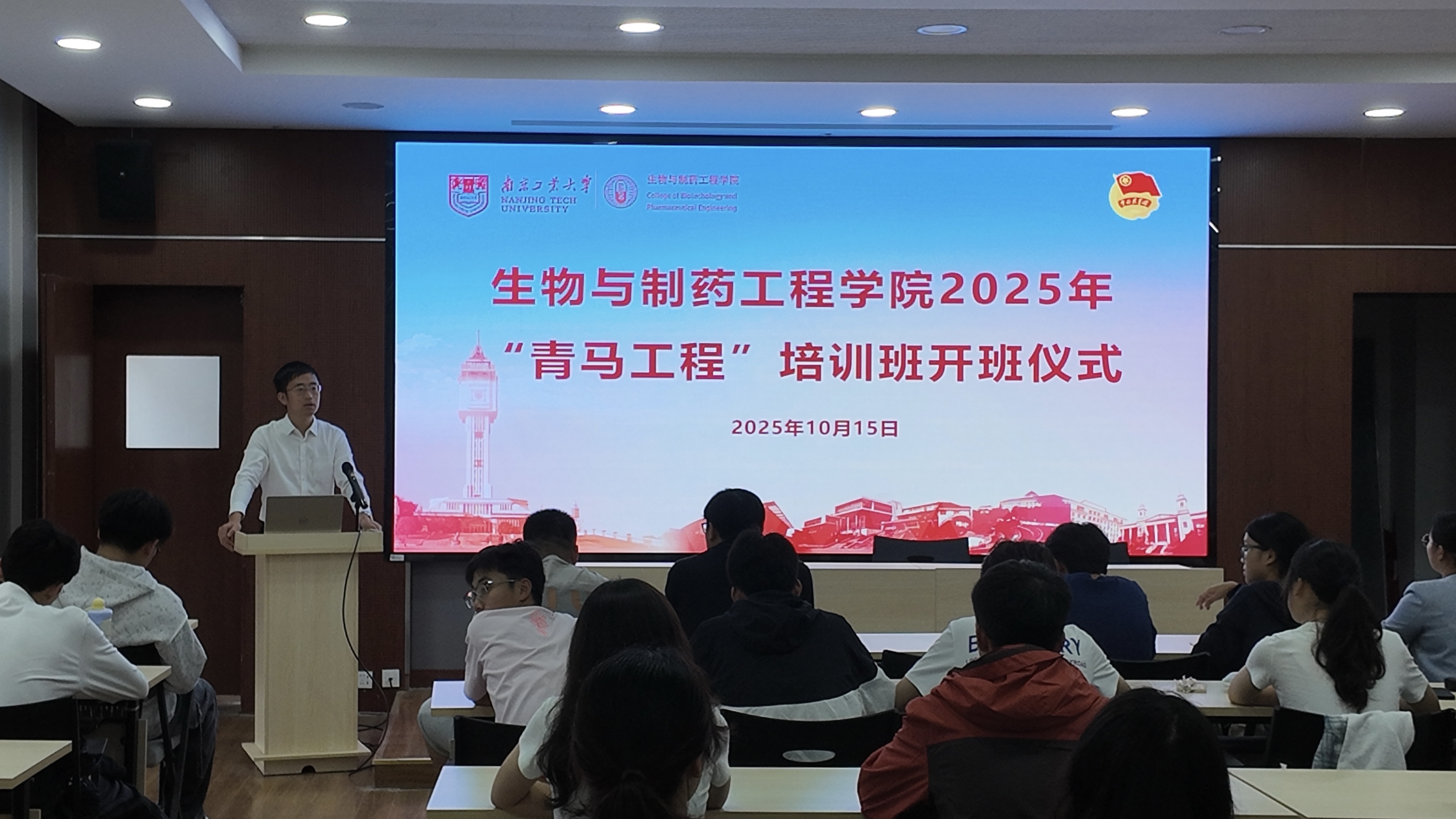为深入学习贯彻习近平总书记关于青年工作的重要思想,10月15日下午两点,生物与制药工程学院在尚德楼A1一楼报告厅举行2025年"青马工程"培训班开班仪式。学院团委书记张健,团委副书记宋亲、贺鑫、苏少丽及2025年“青马工程”全体学员参加。