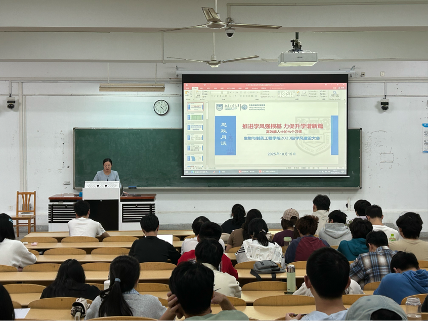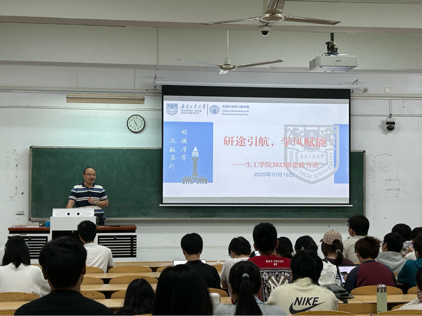 金秋送爽,学意正浓。为引导制药工程专业大三学生明晰未来发展方向,筑牢思想根基,强化学风建设,10月15日下午,生工学院“研途引航,学风赋能”——2023级思政月谈在笃学楼B301顺利举行。本次会议面向正处于学业关键期的大三年级学生,旨在通过师生深度交流,为同学们的“研途”与职业生涯规划指点迷津,为成长成才注入强劲思想动力。会议由刘海全老师主持