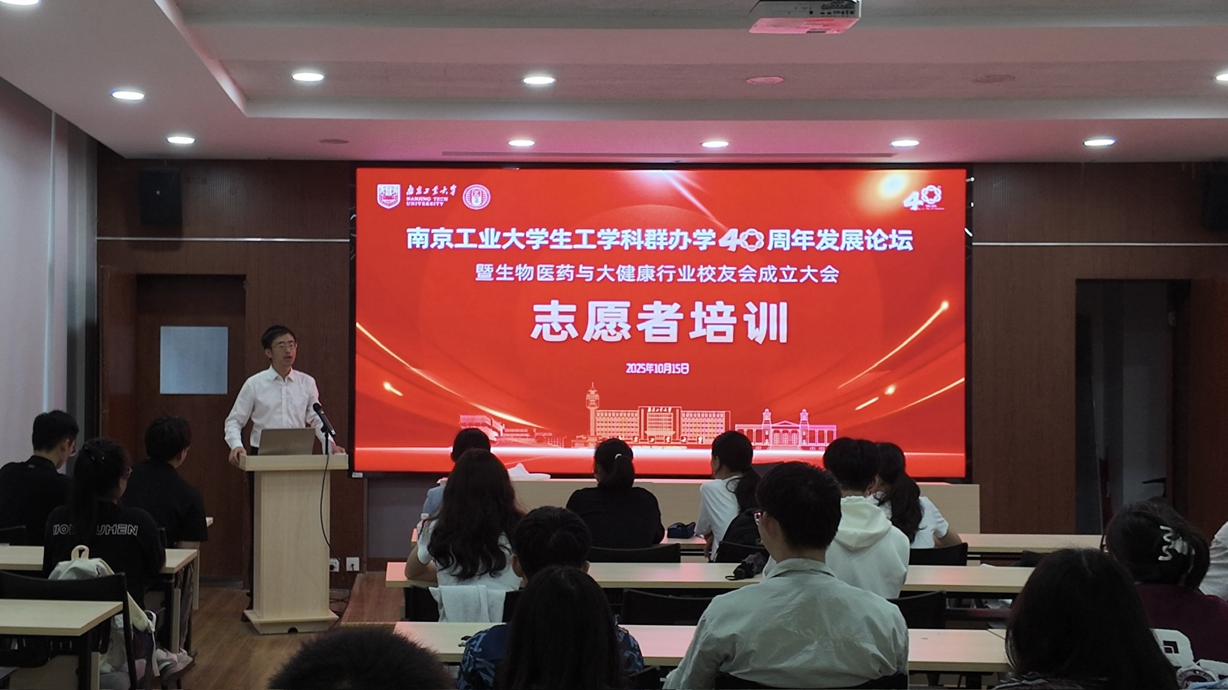 2025年10月17日至18日,南京工业大学生工学科群办学40周年发展论坛暨生物医药与大健康行业校友会成立大会圆满落幕,由生工学院团委组建的志愿者队伍以饱满的热情、专业的服务,全程参与会议保障工作,为活动的顺利开展注入青春动能。