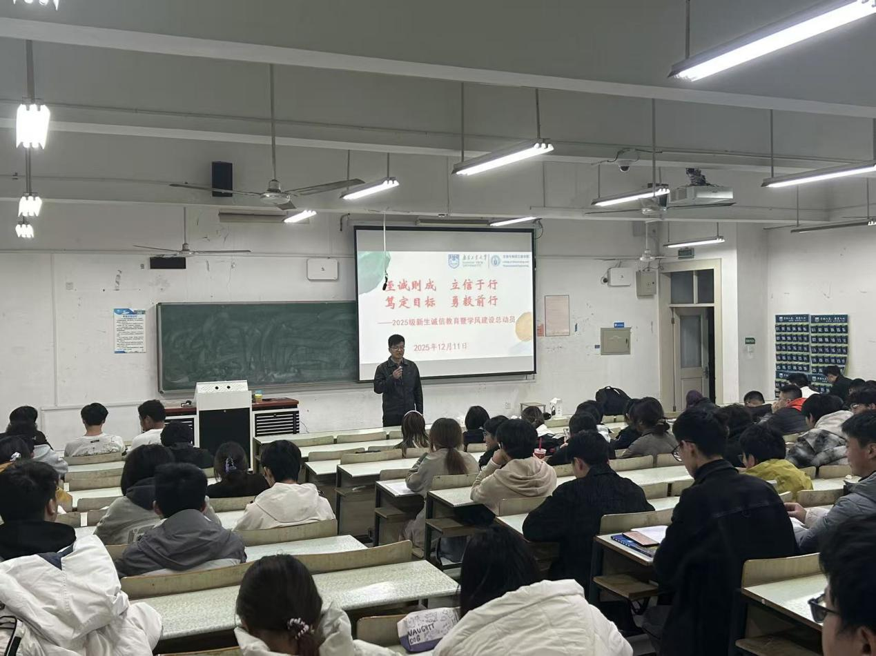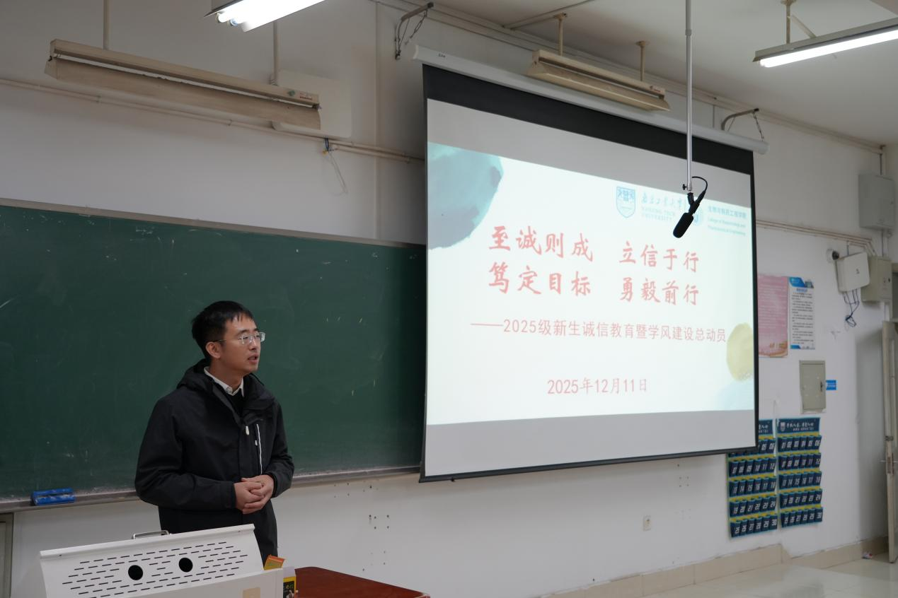 为引导新生树立诚信意识、筑牢学风根基,生物与制药工程学院辅导员张星老师、张健老师分别于12月11日和12月12日举办2025级新生诚信教育暨学风建设总动员大会,以“至诚则成 立信于行 笃定目标 勇毅前行”为主题,为新生扣好大学生涯“第一粒扣子”。