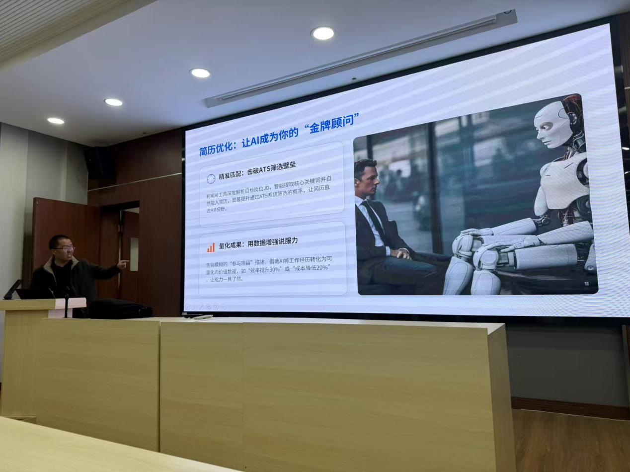 本次讲座内容丰富、逻辑清晰,不仅为毕业生应对AI时代职场挑战提供了切实参考,也进一步搭建了校企沟通的桥梁,为毕业生进一步提升职场竞争力奠定坚实基础。