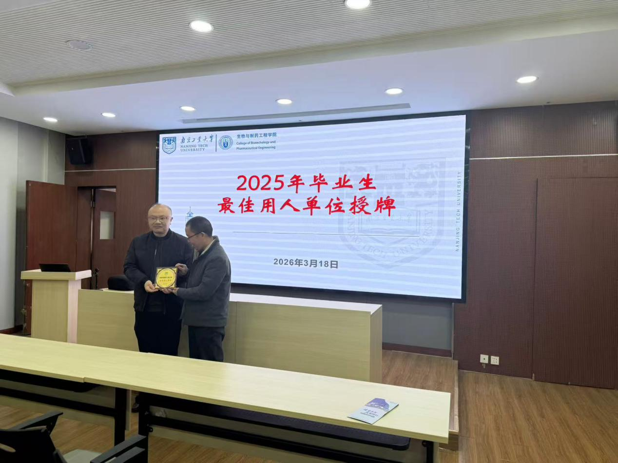 在讲座正式开始前,徐老师代表学校向南京健友股份有限公司授予“2025年毕业生最佳用人单位”奖牌,据悉,近年来,该公司录用我校毕业生数十位,充分体现了企业对我校人才培养的认可以及对毕业生就业给予了深远的吸引力。