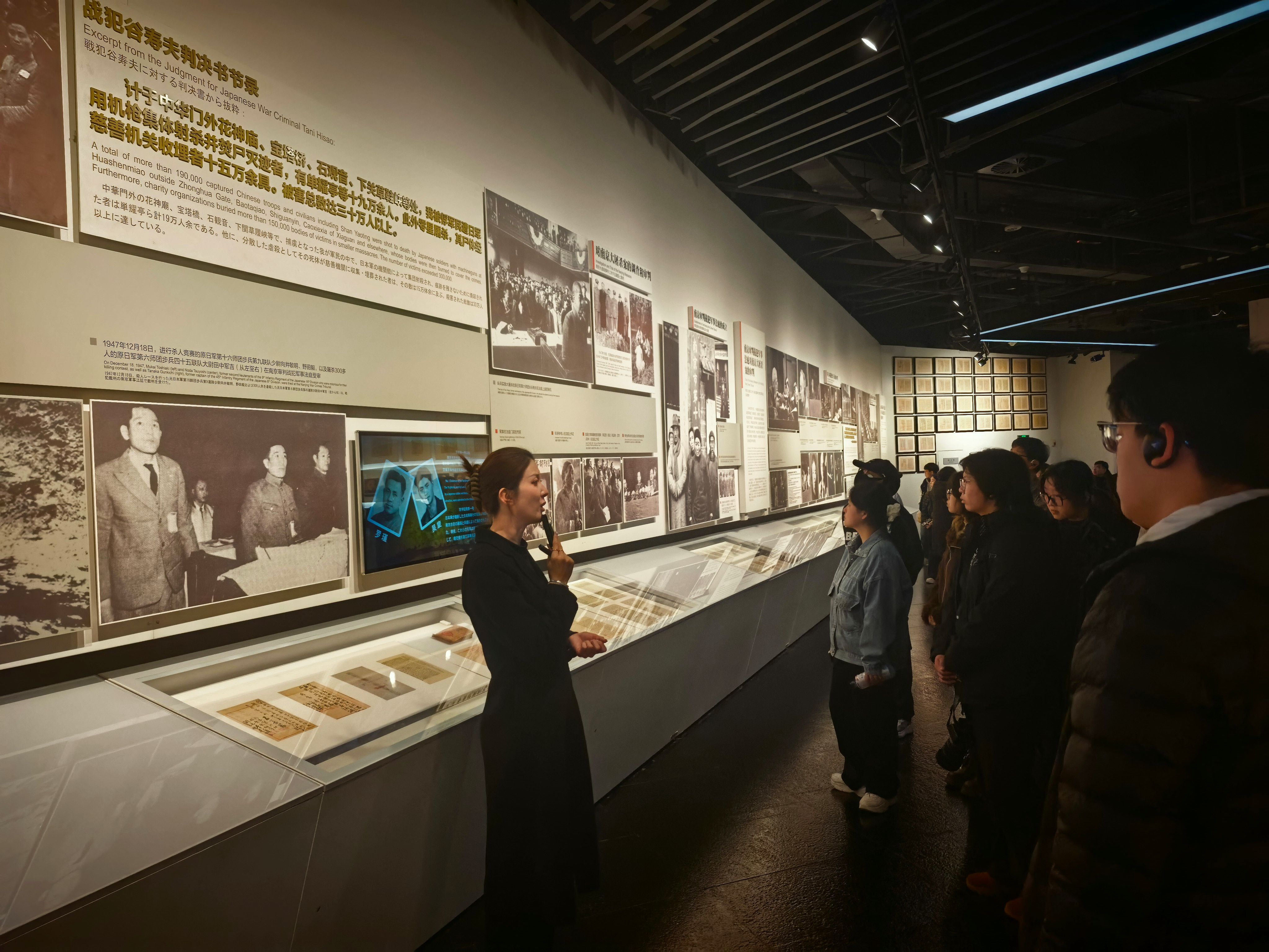 步入纪念馆,在讲解员的引导下,同学们依次走过史料陈列厅、“万人坑”遗址、和平公园等核心展区。泛黄的历史照片、斑驳的实物史料、触目惊心的影像记录,无声诉说着1937年那段黑暗岁月,让大家真切认识到侵华日军犯下的滔天罪行,也深刻体会到和平的来之不易。同学们神情肃穆、驻足凝视,在历史细节中触摸民族伤痛,在无声见证中汲取奋进力量。