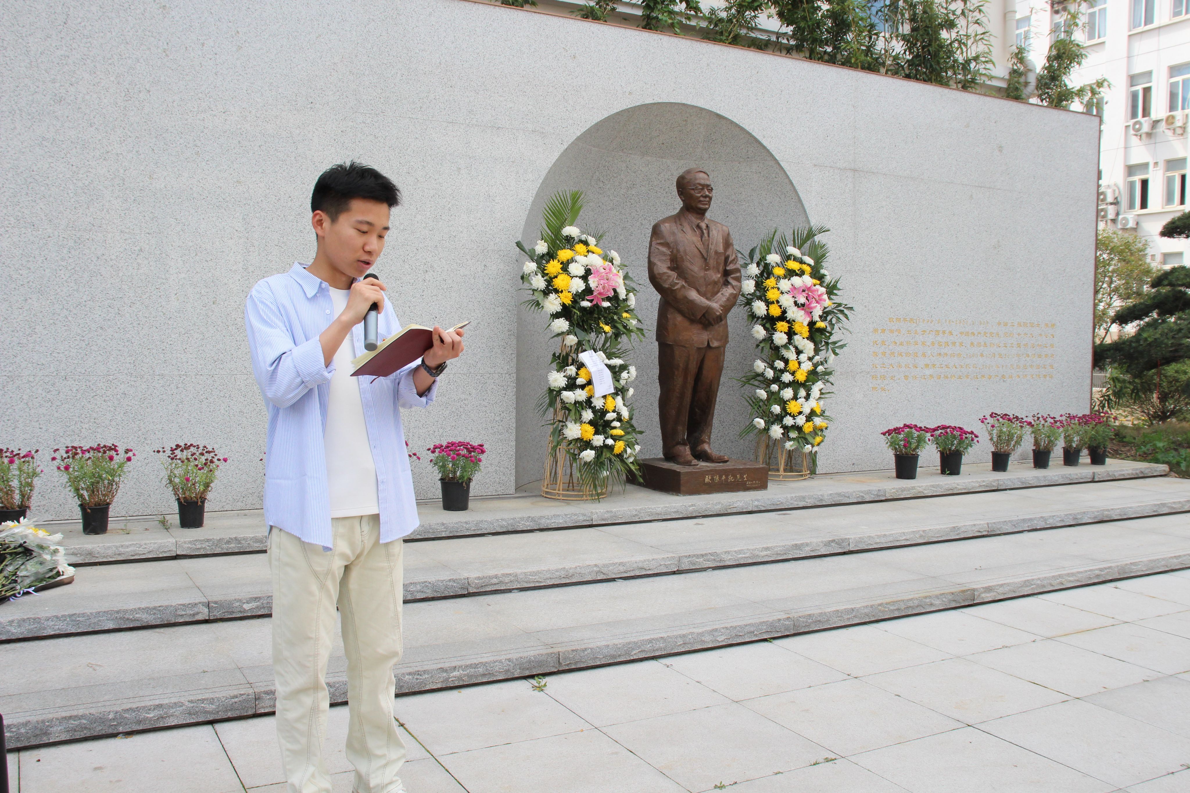 4月5日上午,师生代表们在生工楼欧阳平凯院士雕像前举行祭扫仪式。学子们肃立聆听欧阳平凯院士白手起家建专业、带领团队攻坚克难的生平事迹,深刻体悟了欧阳平凯“忠诚精实” 精神的内核。大家认真打扫广场,细致擦拭纪念雕塑和墙壁,并敬献花圈,以庄重的仪式,寄寓对欧阳平凯老师的无尽敬仰与追思。