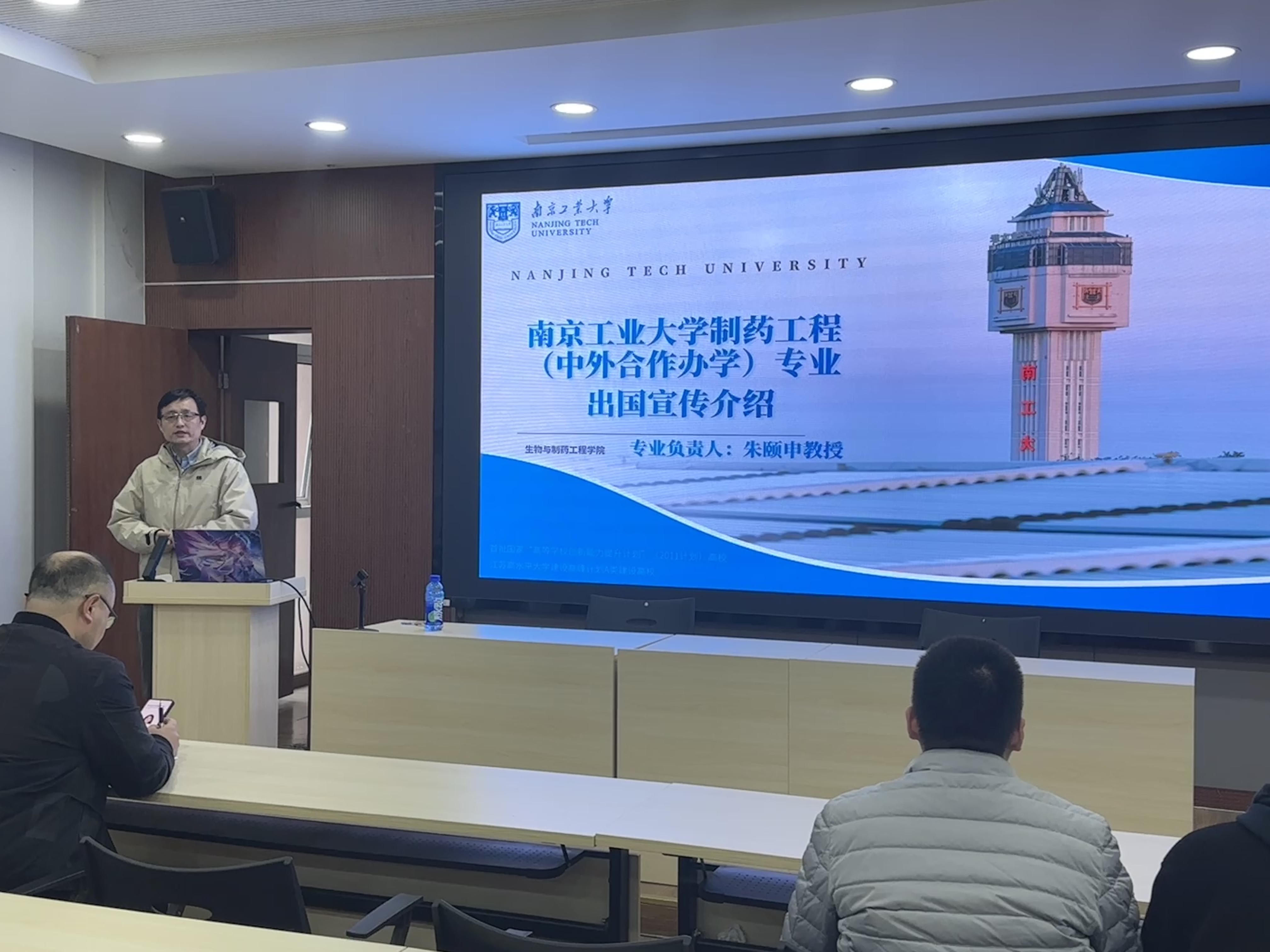 宋老师对23级制药工程国际班同学的整体学习情况进行总结,并就学分修读、雅思语言考试达标以及国内外升学规划等关键问题重点强调。朱教授特别就合作院校——都柏林理工大学的办学水平、学术资源及其相关学位的国际认可度(含金量)为同学们做了详细说明,帮助大家更清晰地了解海外学习平台,并公布学院对出国深造同学的奖励机制,充分体现学院对同学们出国深造的重视和支持。