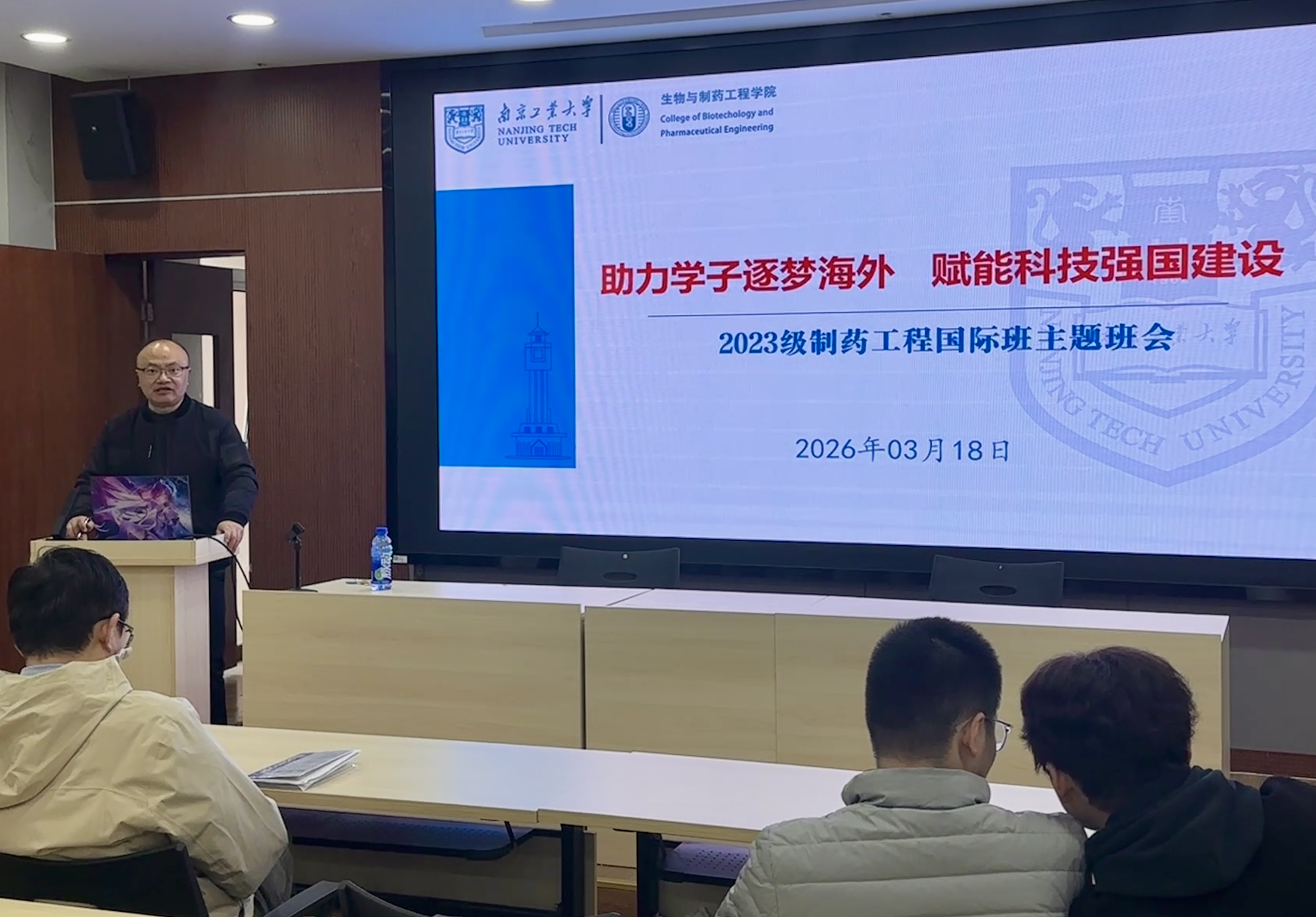 新学期伊始,为精准助力制药工程国际班同学学业规划,赋能未来发展,生工学院于3月18日以思政月谈形式召开“助力学子逐梦海外,赋能科技强国建设”主题班会。主题班会由辅导员宋亲老师和专业负责人朱颐申老师主讲,全体23级国际班同学参加。