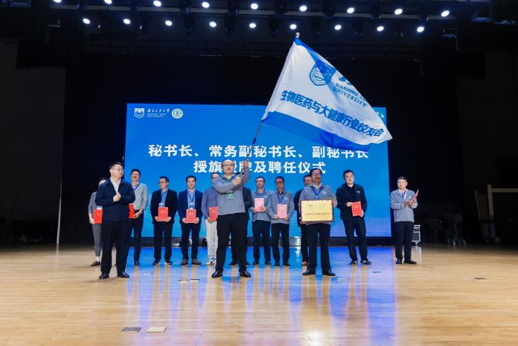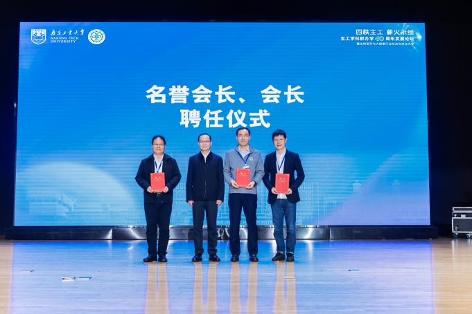 “从生物化工教研组起步,到如今学科群蓬勃发展,我们始终与国家战略同频共振。”党委书记荆晅在致辞中道出生工学科四十年奋进初心,并向校友会提出三点希望:心系校友,打造温暖的“精神家园”;聚力创新,搭建高效的“协同平台”;勇担使命,贡献坚实的“工大力量”。希望校友会能团结引领广大校友,传承“忠诚精实”的欧阳平凯精神,主动融入长三角一体化、长江经济带、一带一路等,在生物医药、健康食品、合成生物制造等领域持续贡献南工大智慧,让“生工人”成为行业高质量发展的代名词。生工学院党委书记高振向大会汇报了生物医药与大健康行业校友会筹备情况、校友会守则,公布了第一届理事会组织机构建议名单,并提交大会表决。陆伟东副校长宣读《关于同意成立南京工业大学生物医药与大健康行业校友会的批复》,荆晅书记为行业校友会名誉会长及会长颁发聘书,陆伟东副校长为校友会常务副会长及副会长颁发聘书,对外合作与发展处处长伏永祥为校友会秘书长、常务副秘书长、副秘书长颁发聘书并授旗授牌。