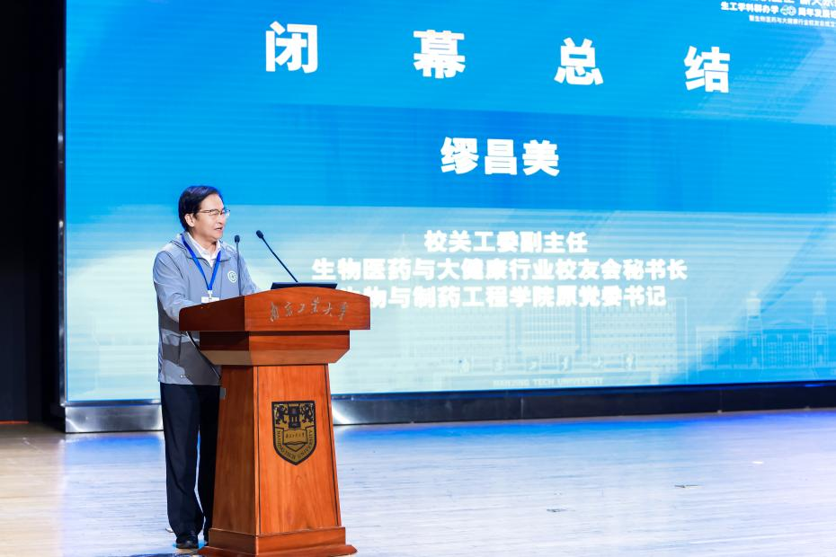 校关工委副主任、学院原党委书记、行业校友会秘书长缪昌美在大会总结中,指出希望学科群全体师生和社会各界校友们以此次大会为新的起点,以更加开放的姿态、更加协同的模式、更加昂扬的斗志,将学校的学科优势、人才的智慧优势与产业的市场优势紧密结合,共同谱写生物医药与大健康领域“融创发展”的崭新篇章!