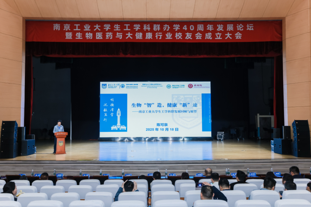 共忆办学荣光、共话学科未来、共绘产学研融合新蓝图!10月18日,南京工业大学生工学科办学四十周年发展论坛暨生物医药与大健康行业校友会成立大会在博雅堂隆重举行。校领导荆晅、陆伟东,党委常委张健、黄锁明,相关职能部门负责人以及近500名师生校友齐聚一堂,共同见证学科发展的里程碑时刻。大会由生工学科群各学院党委书记共同主持。