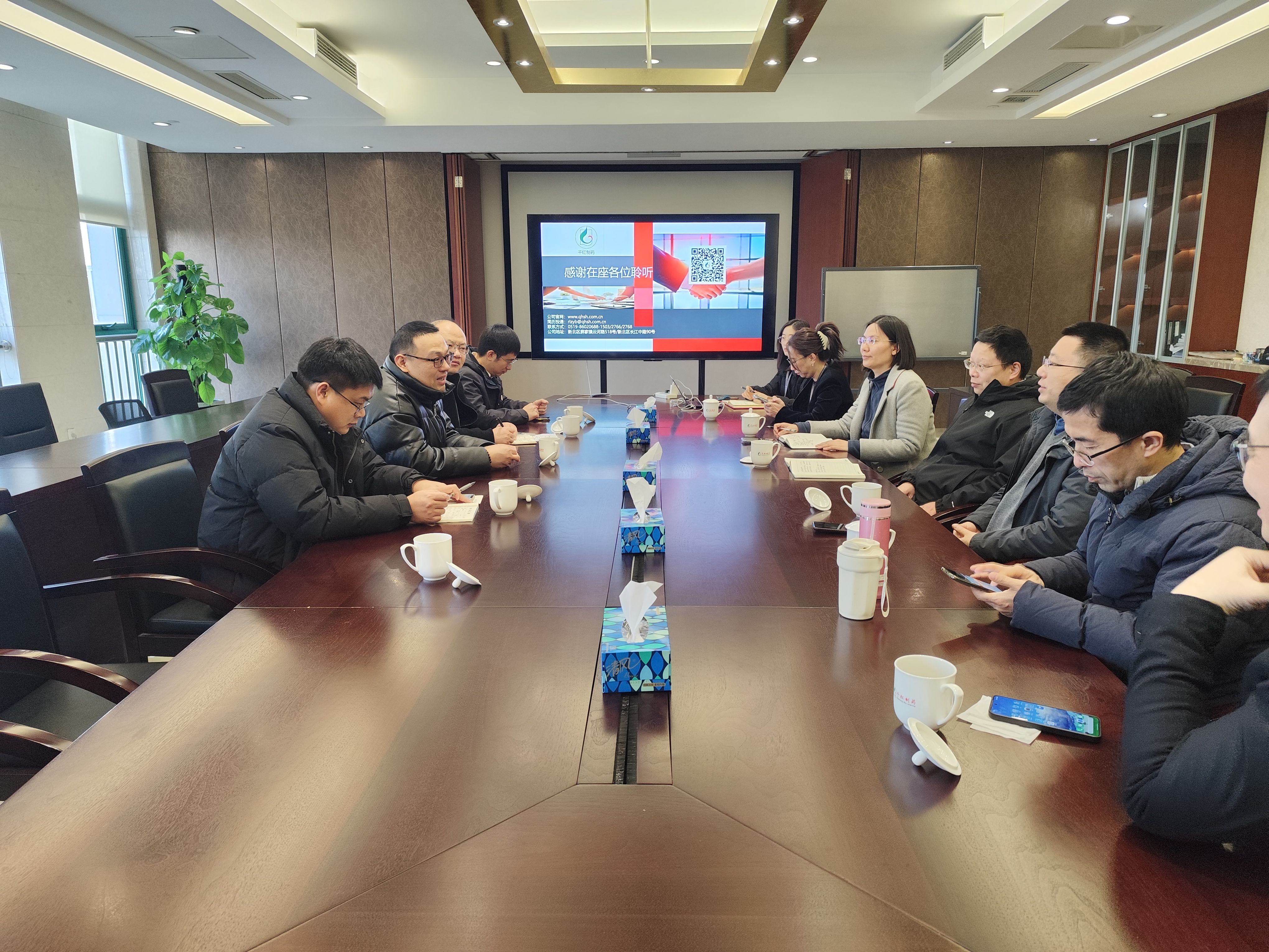 在走访活动中,常州市新北区章俊副区长向高书记一行介绍了当地的产业布局尤其是生物医药产业的发展前景,期待我校更多优秀学子到常州就业创业、更多产学研项目到常州落地生根。高书记一行向各方的热情接待表示感谢,并介绍了学校发展概况、学科发展历程以及学院在学科建设、人才培养、师资队伍以及科学研究等方面工作,回顾了学院与常州相关企业前期合作成效,并期待校企在大学生实习就业、产业教授选聘、企业员工深造、科研成果转化等方面继续深化合作。参会各方围绕人才招聘、产教融合、成果转化等开展了深入交流。